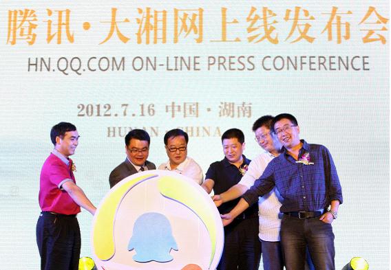 7月16日下午,中南傳媒、瀟湘晨報與騰訊公司合作推出的大湘網上線新聞發布會在長沙運達喜來登酒店舉行,湖南省人大常委會副主任肖雅瑜,省委網宣辦主任、省政府辦公廳副主任卿立新,騰訊公司網絡媒體事業群總裁劉勝義,湖南出版投資控股集團總經理張天明,中南傳媒副總經理、瀟湘晨報董事長龍博共同宣布了大湘網的上線。