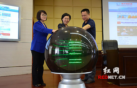 省委法治湖南建設(shè)領(lǐng)導(dǎo)小組辦公室常務(wù)副主任、湖南省司法廳廳長談敬純(左二),省委法治湖南建設(shè)領(lǐng)導(dǎo)小組辦公室副主任、省司法廳副廳長傅莉娟(左一),中南傳媒董事、紅網(wǎng)黨委書記、董事長舒斌共同觸摸水晶球,標(biāo)志著全新改版的《法治湖南網(wǎng)》正式上線