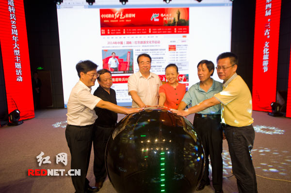 湖南省委常委、省委宣傳部部長許又聲[左三]等領(lǐng)導(dǎo)啟動中國湖南紅色旅游網(wǎng)。
