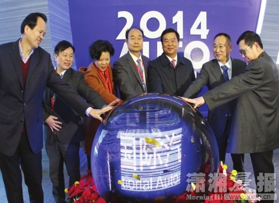 湖南省副省長何報翔等共同啟動象征車展開幕的水晶球