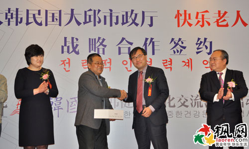 4月7日上午,大韓民國大邱市政廳和快樂老人報社在湖南長沙簽署戰略合作備忘,共同啟動“樂游韓國——中韓健康文化交流活動”出席簽字儀式??鞓防先藞笃煜旅罆r美刻國際旅行社和韓國POLY VISION集團公司、韓國國際豪華旅行社共同舉辦這一健康文化交流項目。湖南快樂老人產業公司首個海外養生基地也正式落戶韓國大邱市。